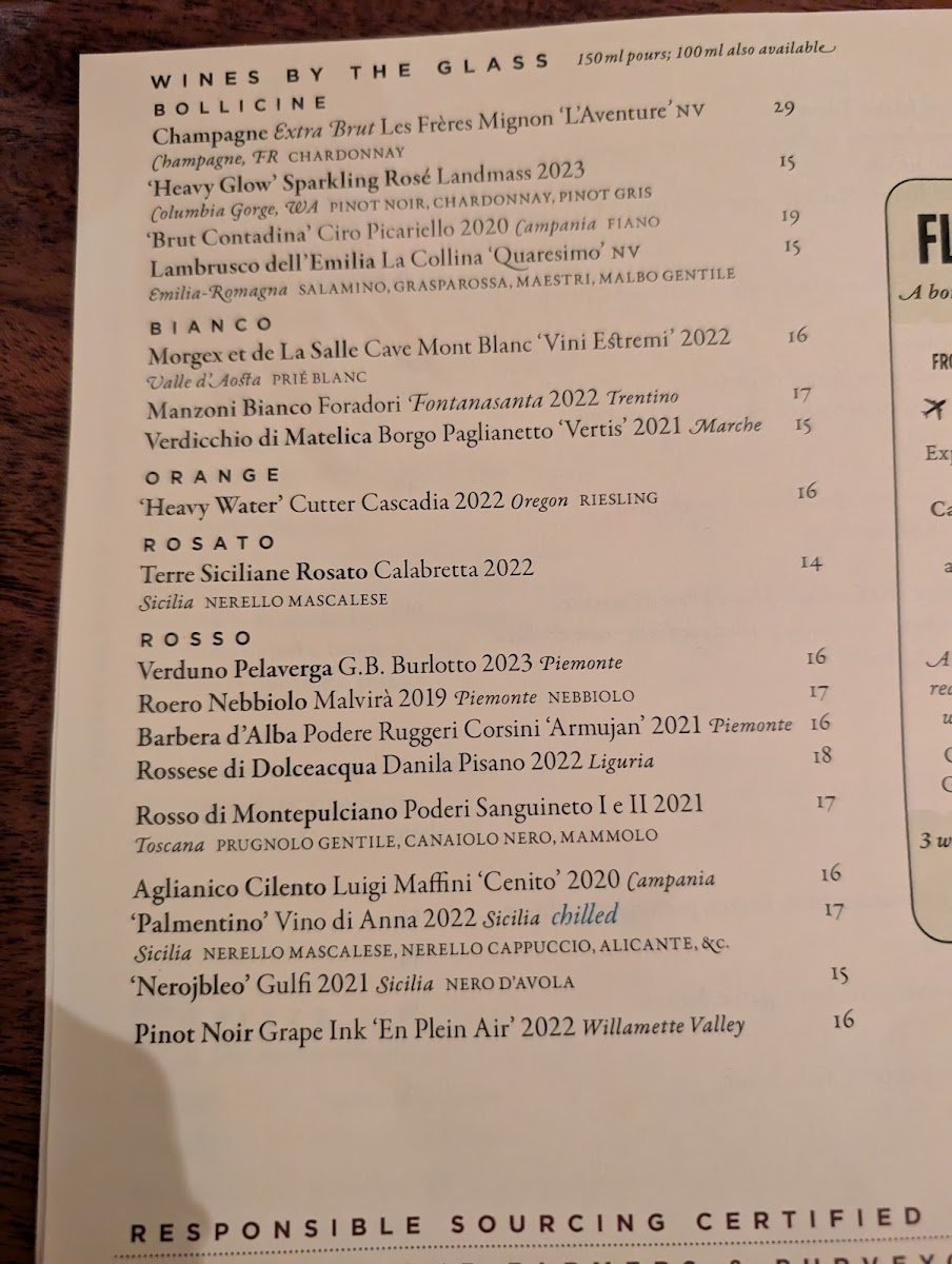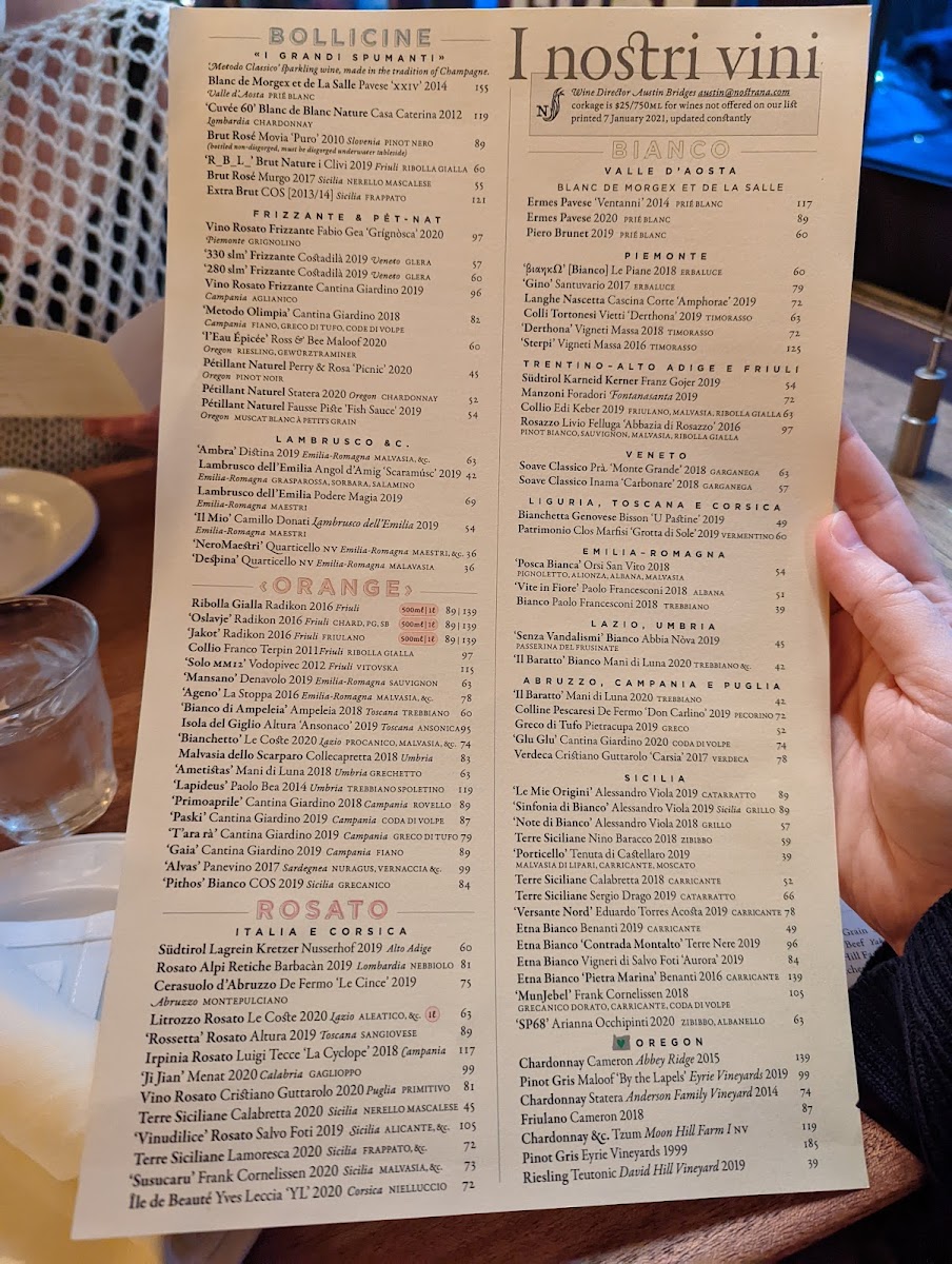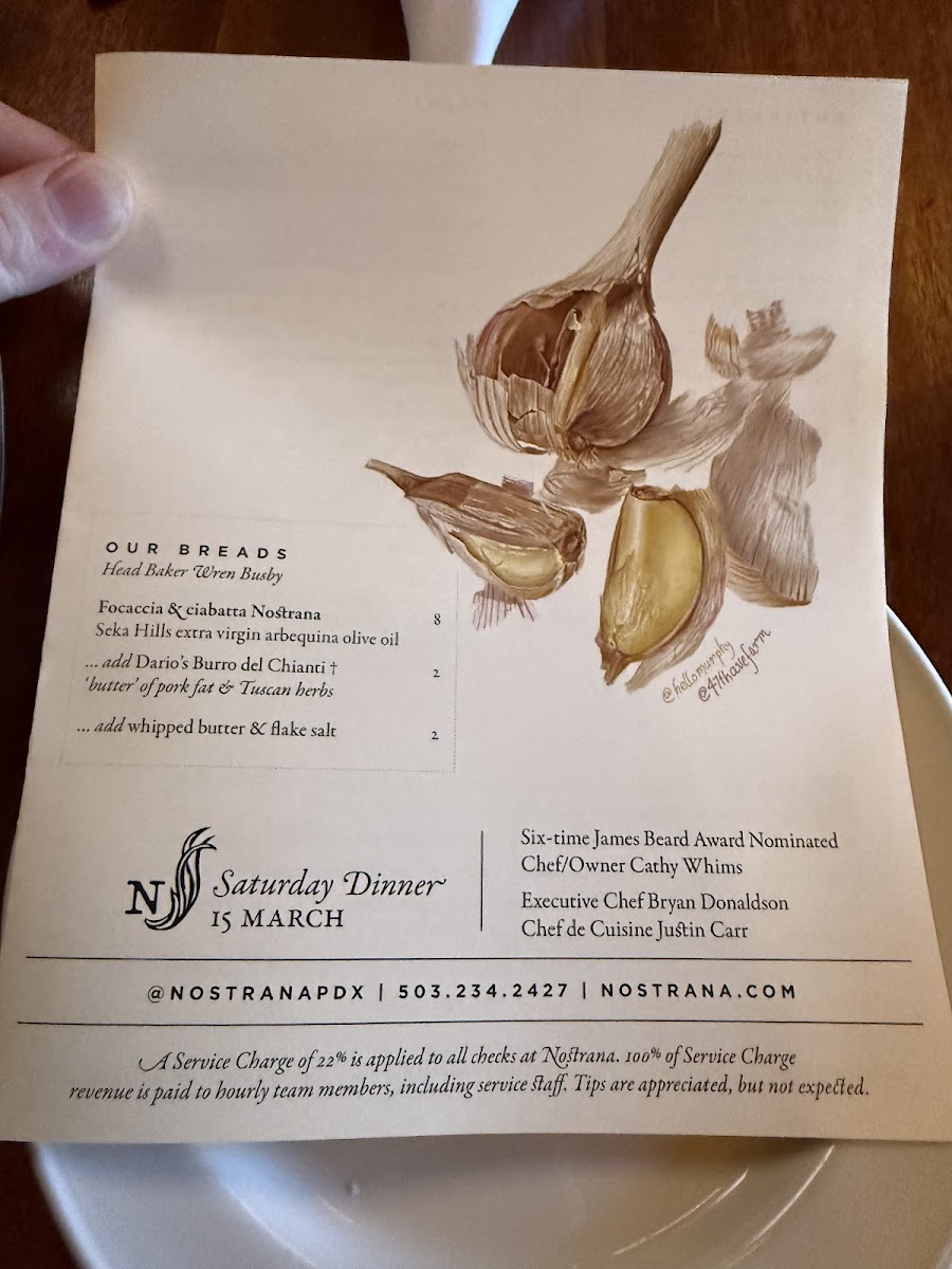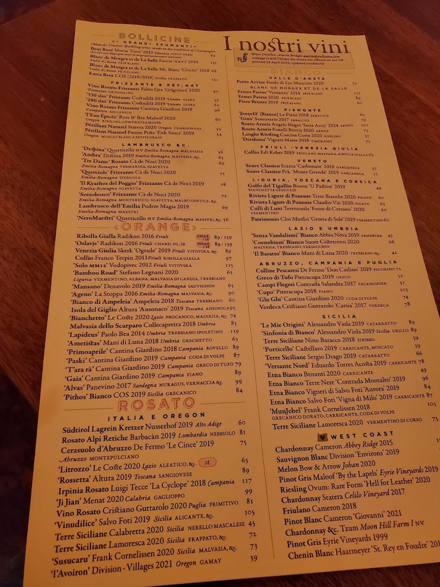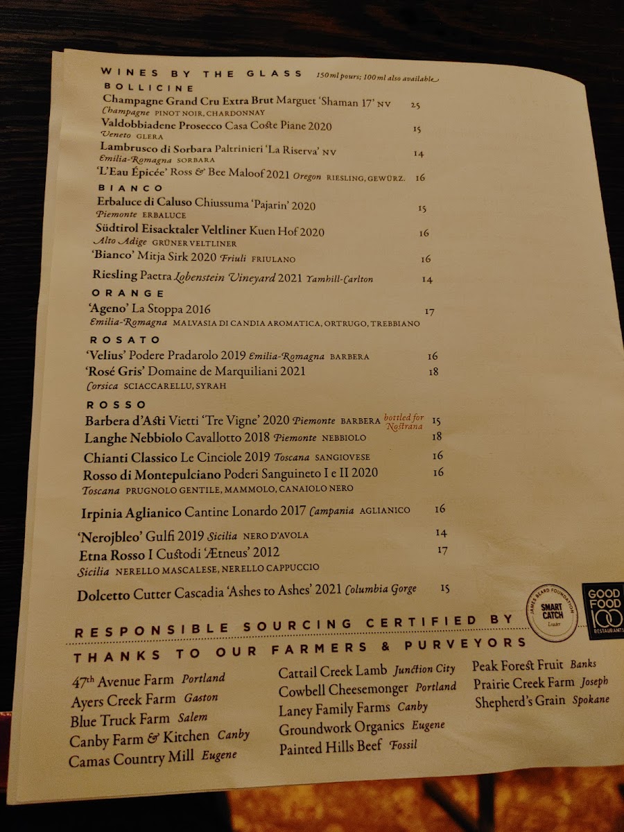 My wife and I love Neapolitan pizza and are working our way though the top 50 pizza places as raked by 50toppizza.it which brought us to Nostrana in Portland. The meal we enjoyed at Nostrana was delicious, so delicious that we’ve eaten here on both of our trips to Portland! On our first visit we arrived without a reservation and waited quite a while before we were seated but once we were seated we enjoyed fresh perfectly baked focaccia and fancy olive oil and a Margherita pizza that was well worthy of the top 50 list! The Second trip to Portland we actually planned our trip to Nostrana and made a reservation so we wouldn’t have to wait. This visit was equally, if not even more delicious. We started out with the focaccia bread again but this time with a special “butter of pork fat” which made the appetizer that much more delicious. We then enjoyed another perfectly made Margherita pizza solidifying Nostrana as one of our favorites for when in Portland!